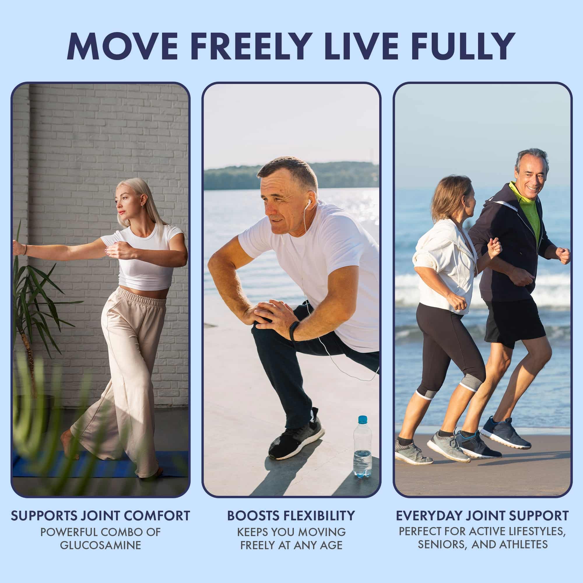 A comprehensive formula combining glucosamine, MSM, turmeric extract, and more to support comfort, flexibility, and long-term joint health.